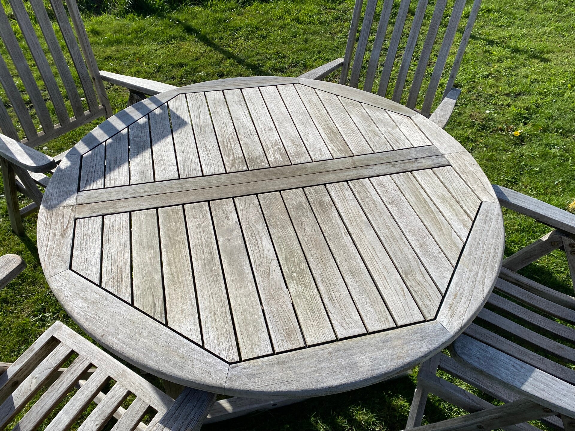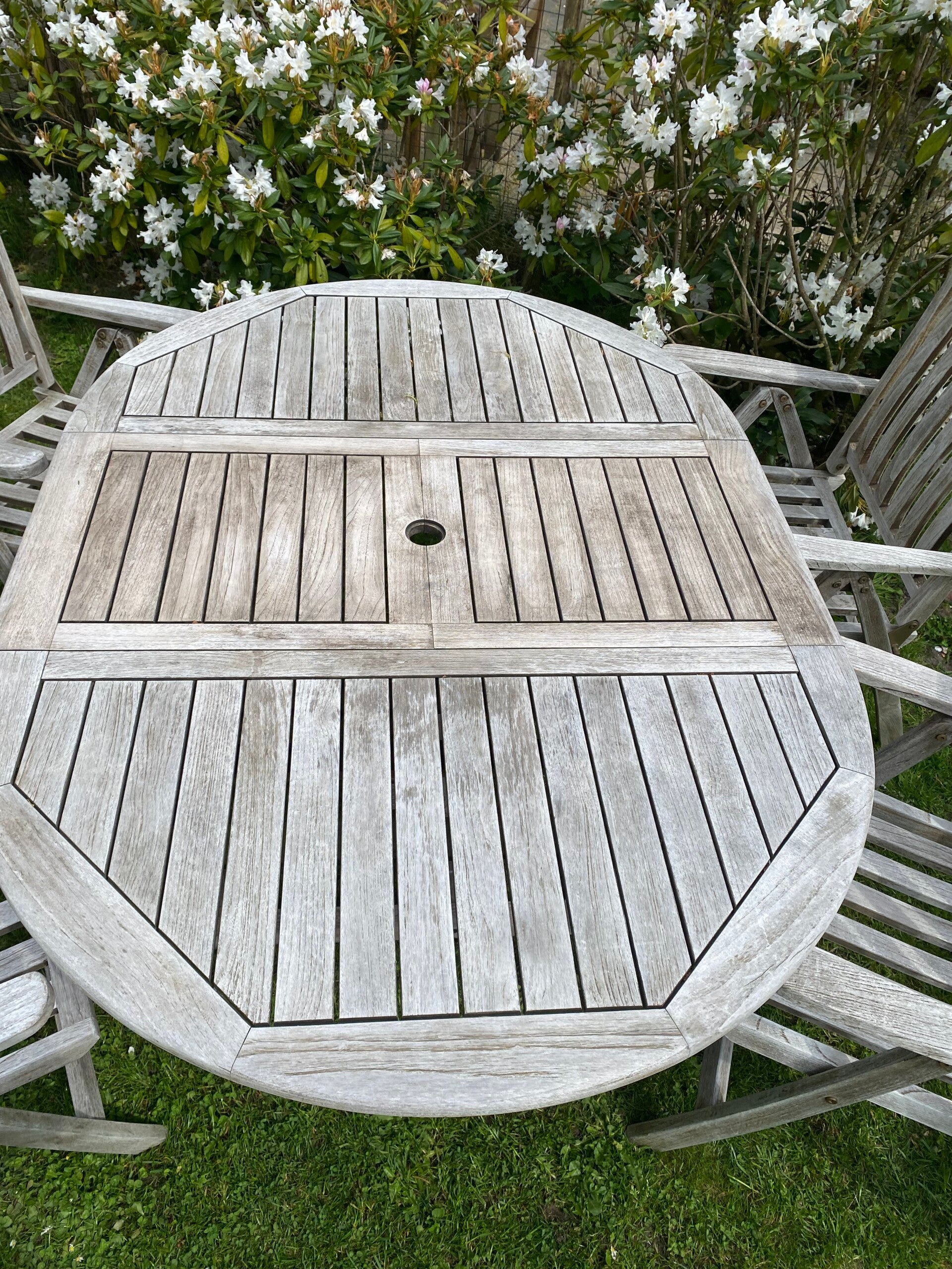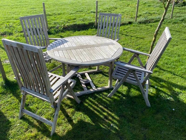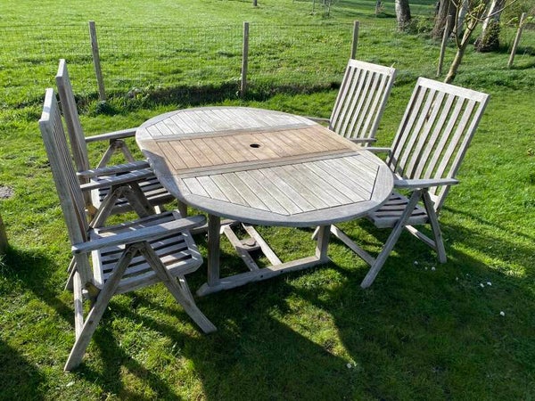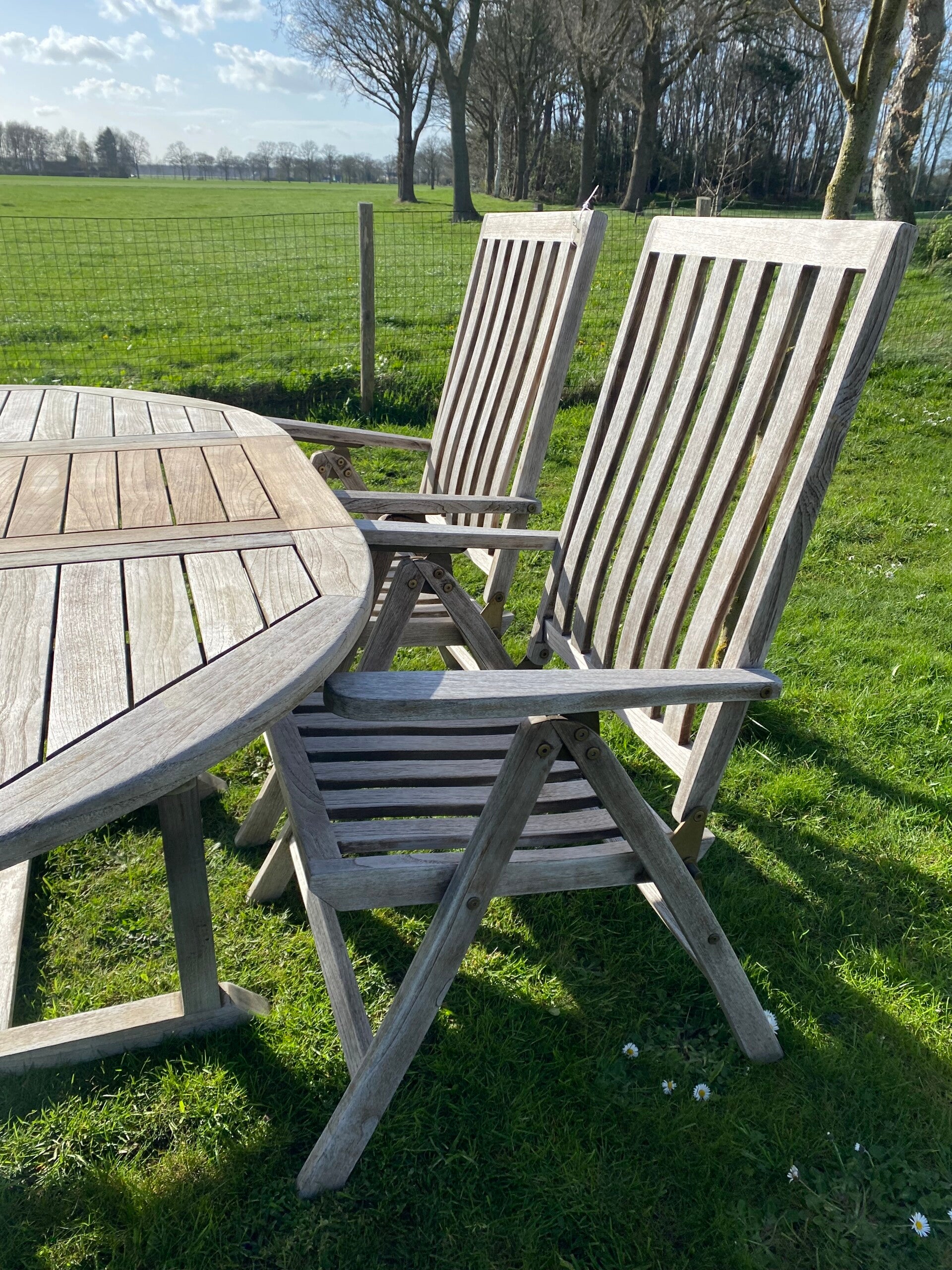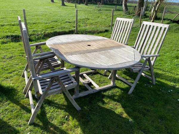 Deze set bestaat uit een eettafel, King’s Teak, welke uitschuifbaar is.